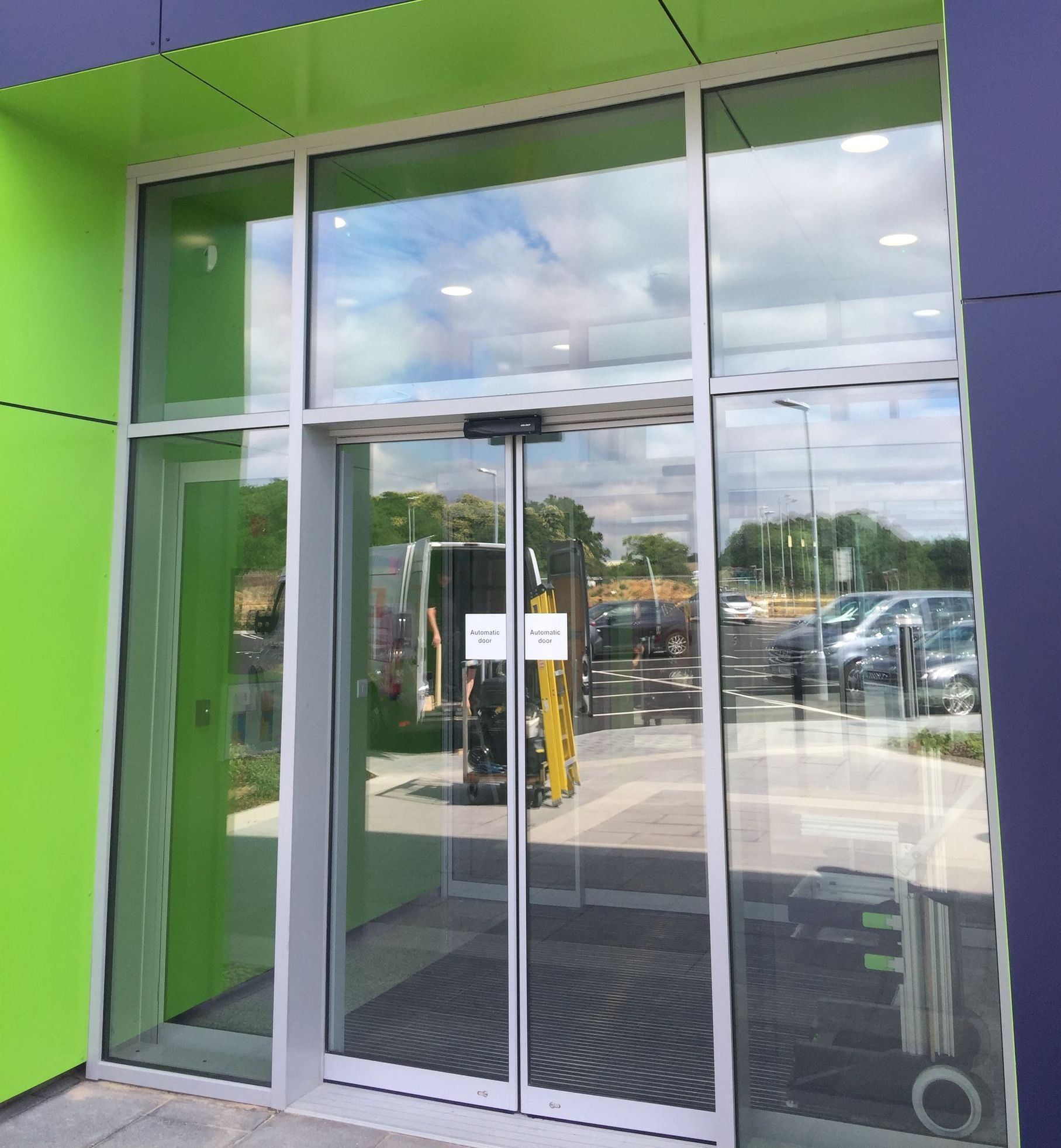 Commercial Project Suffolk - Aluminium glazed curtain wall screens, with automatic sliding doors